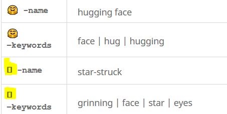 | Separation | A “ | “ (pipe) character is used to separate each keyword when there are multiple keywords for an emoji (see screenshot below) . When you want to append another keyword, click the + to add, copy the Winning value, and append “ | “ before adding your new keyword. |